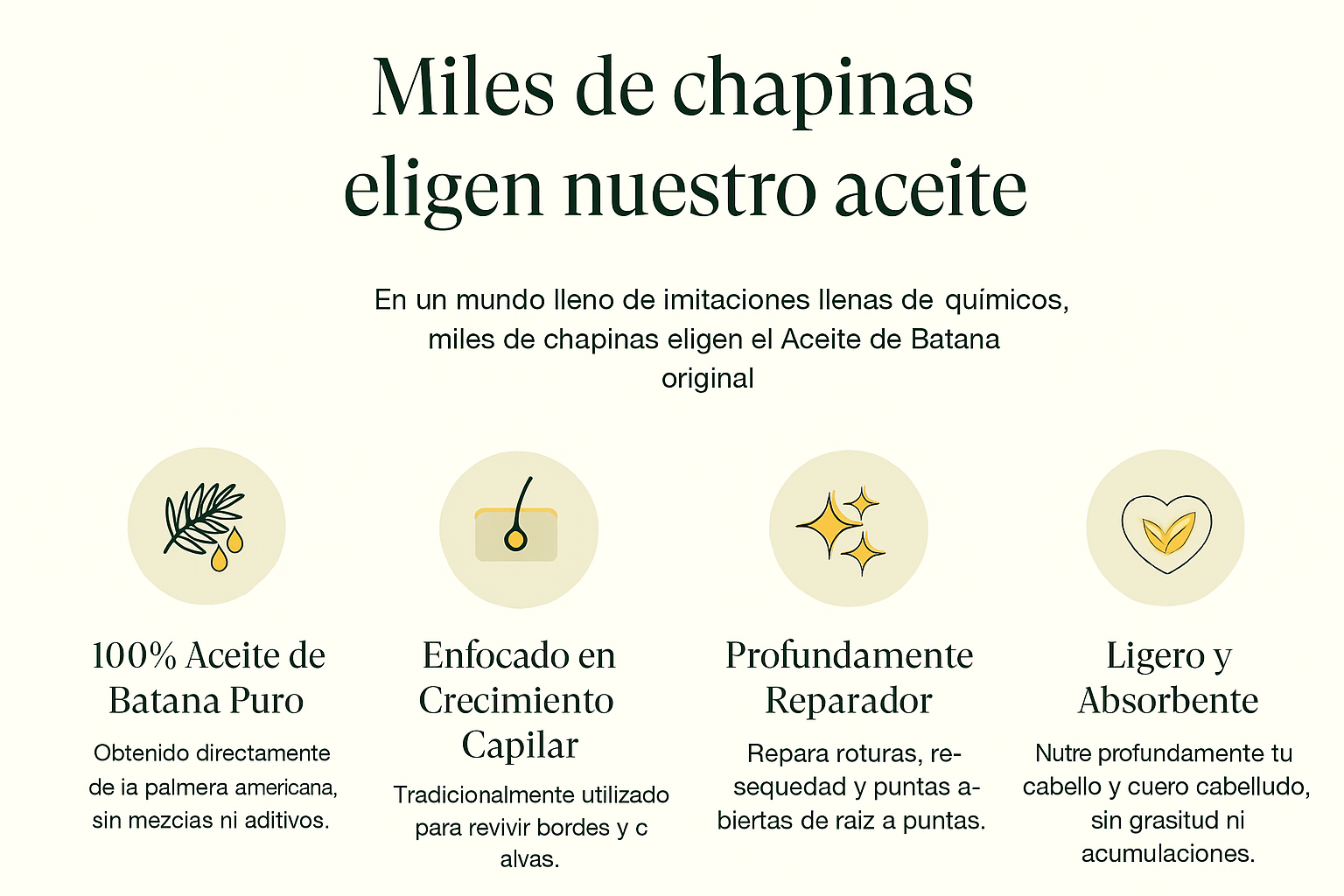 Un solo ingrediente, en su forma más pura, directamente de la selva hondureña. Sin aditivos ni diluciones: solo aceite de Batana con: